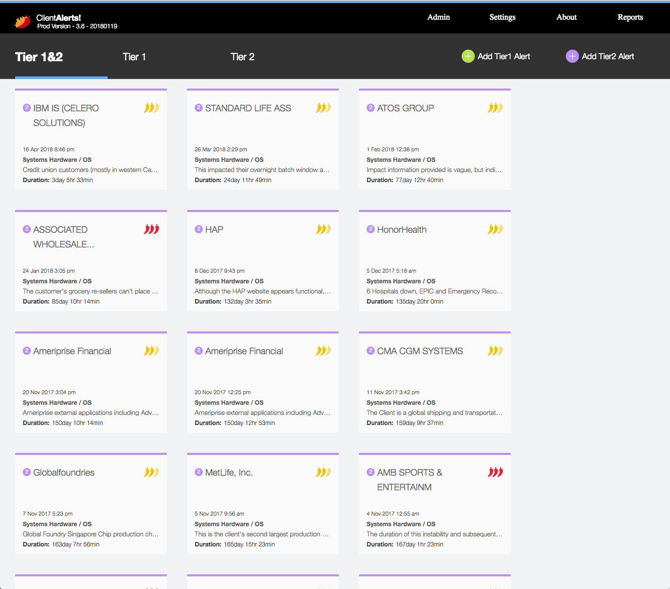 Senior Executives need to know about big issues that impact clients. These are the most critical outages. A Tier 3 outage means the CEO will be on CNBC that night. Lets avoid that.