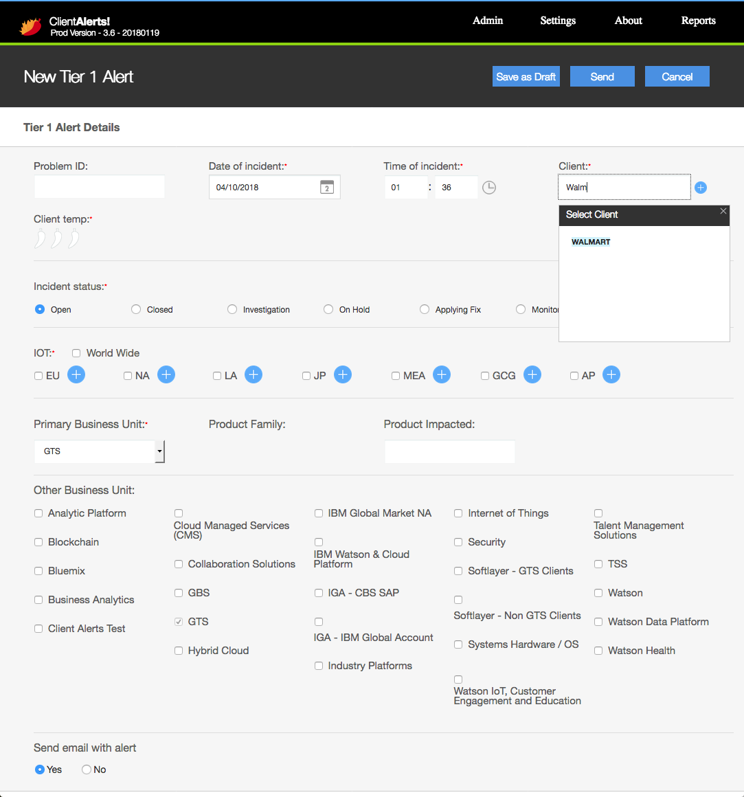 The Alert creators identify the client, business unit and geography affected. From this, I designed the system to create a distribution list that includes all of the people who need to know.