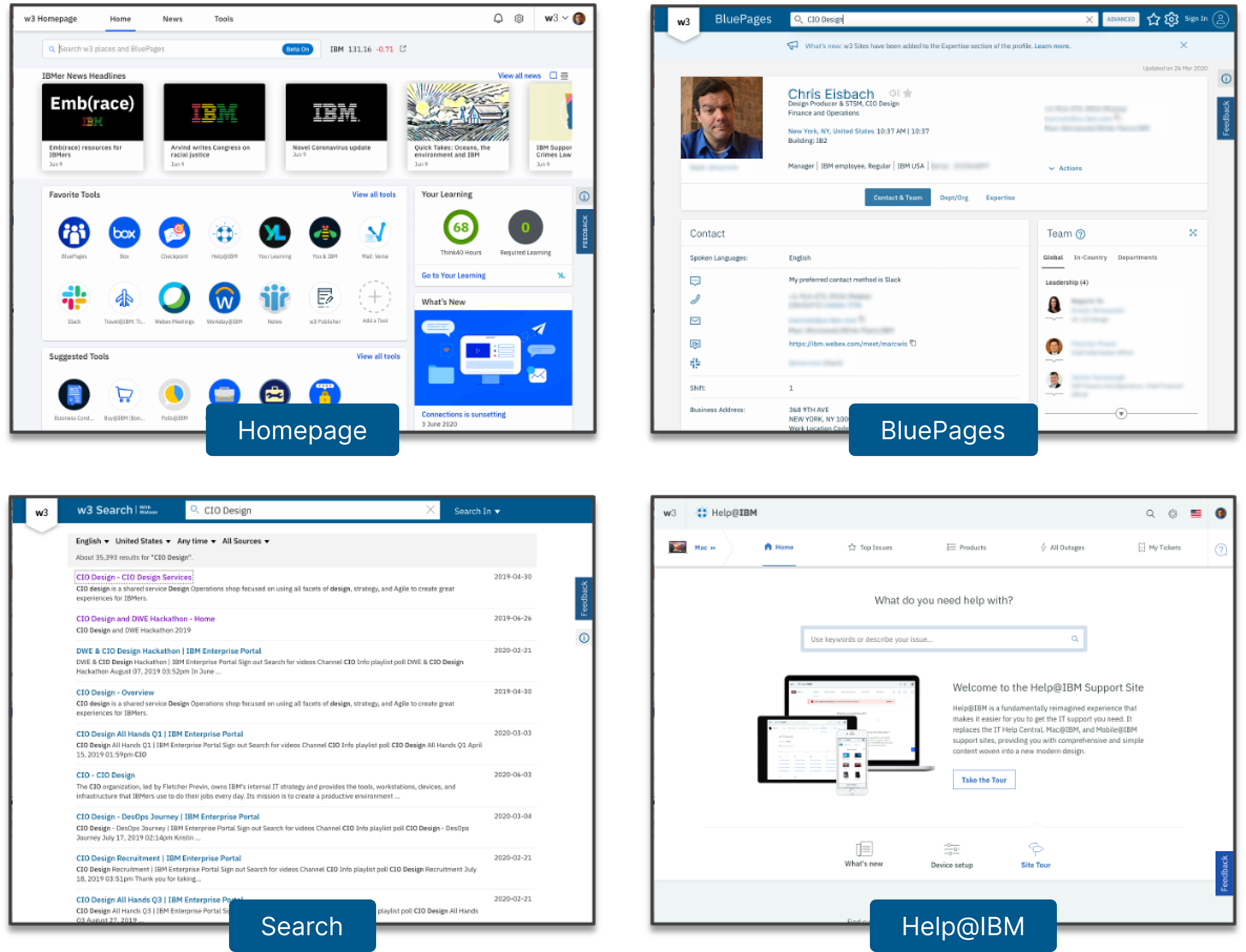 Over years, many useful and critical tools have been created. Some of the most important are: The internal homepage, Search, Help@IBM, BluePages (employee directory). On their own, each of these are important and useful tools, however, traditionally these have all existed independently.